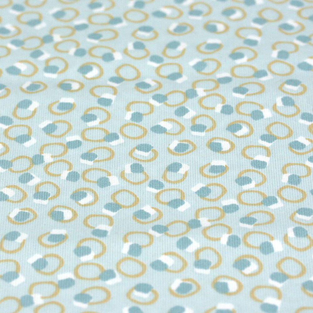 手書きのようないびつな丸が可愛いプリント。指輪のようにも見えますね。