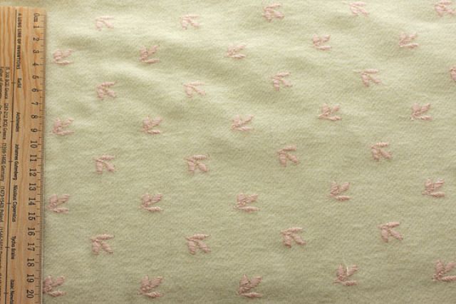 ふんわり起毛のアイボリー地に小さなリーフの刺繍が散りばめられた優しい雰囲気の生地です。