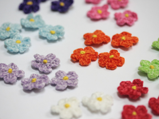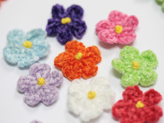 モール糸で編んだお花のモチーフ。