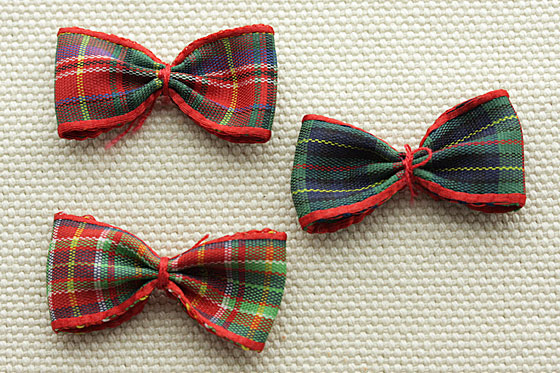 15mm幅のリボンで作ったチェック柄のリボンモチーフです。蝶々型とリボン型の2型あります。