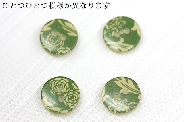 小花模様がプリントされた可愛らしいアンティークボタン。ひとつひとつ模様が違います。