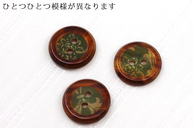 小花模様がプリントされた可愛らしいアンティークボタン。ひとつひとつ模様が違います。