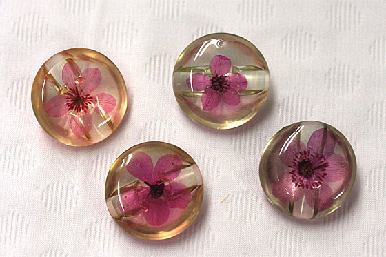 本物のスミレの花びらをアクリルに閉じ込めた、とっても珍しいボタンです。