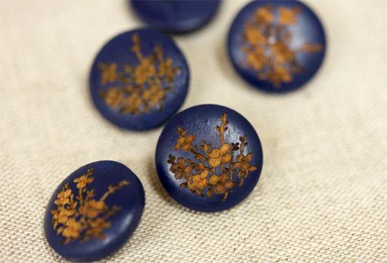 花模様が彫られたところは木肌が見えます。オリエンタルな雰囲気が感じられるボタンです。