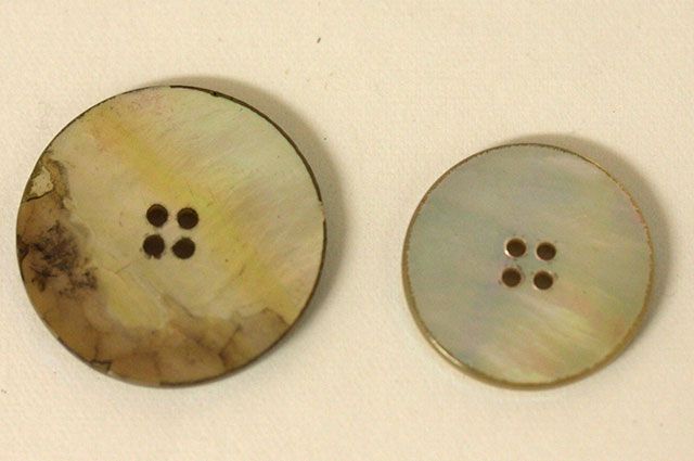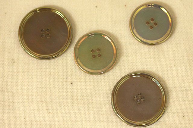 貝ボタンの上に金メッキのような塗装をしたボタン。