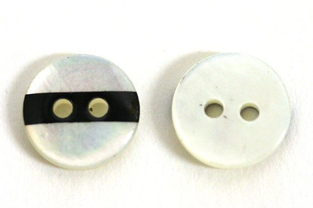 白地に黒いラインがポイントのバイカラ―の貝ボタン。